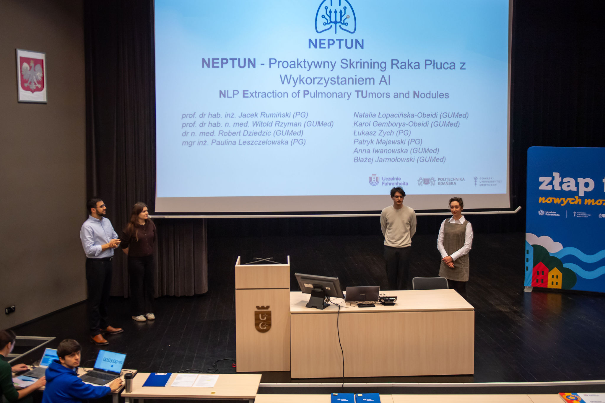 W pierwszej kolejności wyłoniony został zwycięzca czwartej ścieżki, ukierunkowanej na rozwiązania dla regionu. Nagroda główna (30.000 zł) została przyznana autorom projektu: Platforma cyfrowych bliźniaków oparta na sztucznej inteligencji do przewidywania i zapobiegania progresji chorób onkologicznych, zgłoszonego przez koła naukowe Student Scientific Circle of AI in Medicine z Gdańskiego Uniwersytetu Medycznego i SciClub z Uniwersytetu Gdańskiego oraz dr. inż. Krzysztofa Pastuszaka z Politechniki Gdańskiej. System pozwoli na modelowanie indywidualnych profili pacjentów i symulowanie potencjalnych scenariuszy rozwoju choroby, co stworzy podstawę do projektowania terapii spersonalizowanych i badań translacyjnych.